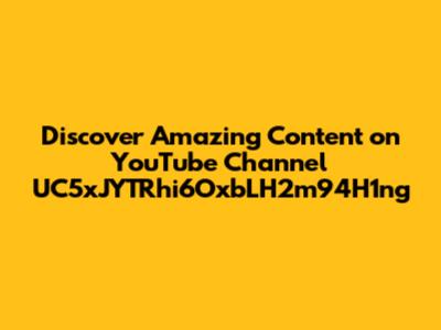 Discover Amazing Content On YouTube Channel UC5xJYTRhi6OxbLH2m94H1ng